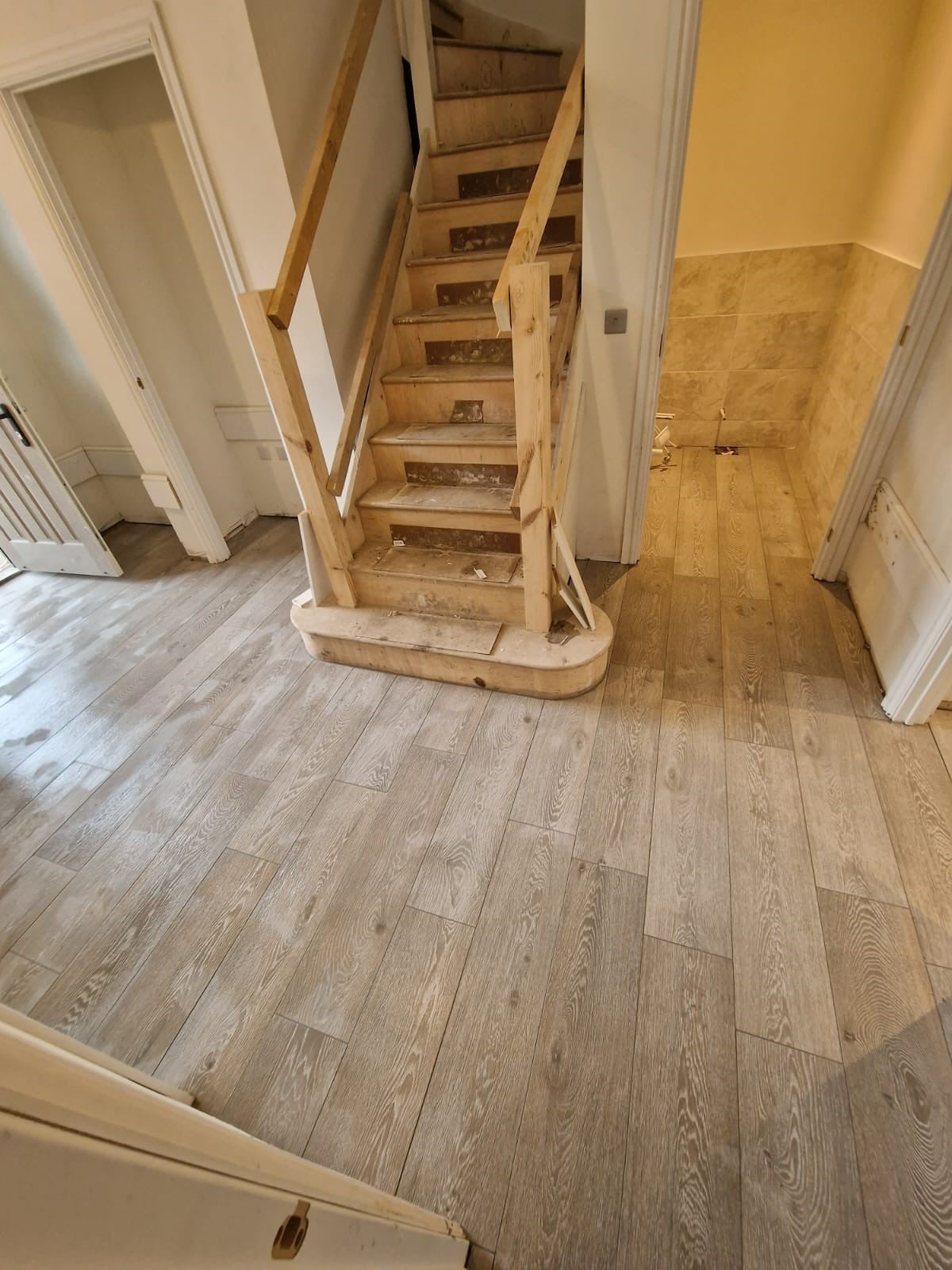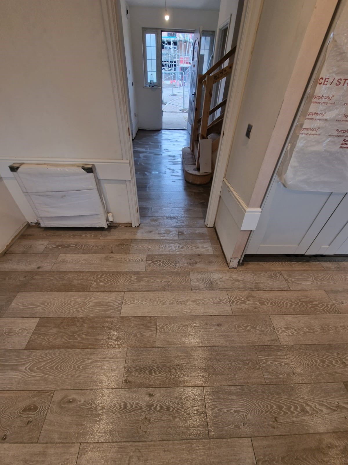 Outcome: The completed ground floor tiling at Worden Gardens reflects the exceptional quality and craftsmanship that Tile Style Lancashire Ltd is known for. The random staggered Porcelanosa plank tiles created a stylish, cohesive look that elevates the living space while offering durability for everyday use.